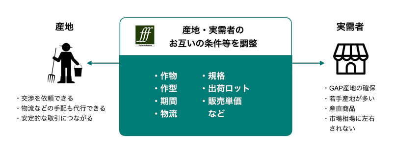 それら産地とGAP認証を評価する実需者を繋げることで、国内のGAP商品の流通を支えています。